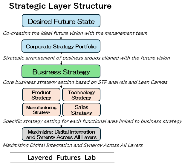 Layered Futures Lab works alongside partner companies’ management teams, from strategy formulation to execution. We go beyond mere strategy planning, contributing to the development of management team members through projects and supporting the growth of next-generation leaders.